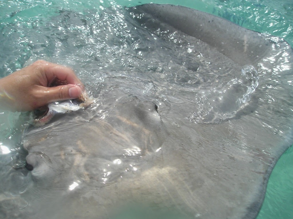 Not scared, despite Steve Irwin’s ironic death by stingray, I placed one hand above and one below one of the water flyers to let it slip through. I felt my thumb being sucked and swallowed, then a clamp down with teeth. Teeth? I thought they simply had sucker mouths. I had no idea I was exposing myself to little sharp fangs. The greedy bugger figured out quickly that I wasn’t food and unclamped.